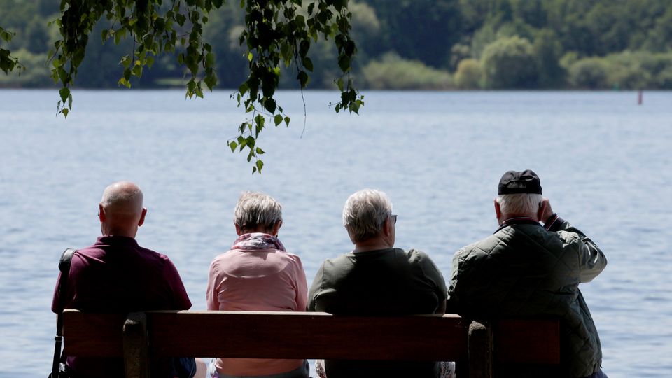 Senioren auf einer Bank am Ufer: Länger arbeiten