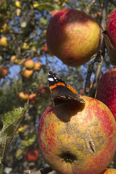 Weitere Gartentipps für einen entspannten Herbst im Naturgarten unter www.NABU.de/gartenkarteFoto (Bernhard Etspüler): Admiral sitzt auf Apel am BaumSeit 125 Jahren begeistert der