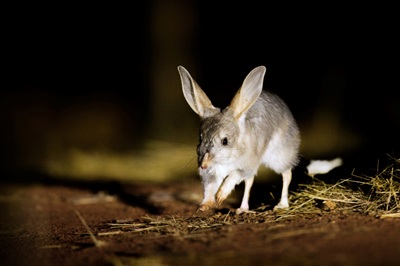 Foto (© Save the Bilby Fund/M. Roberts): Der Greater Bilby,auch Großer Kaninchennasenbeutler genannt,ist mit seinen riesigen Ohren und der spitzen Schnauze unverkennbar.