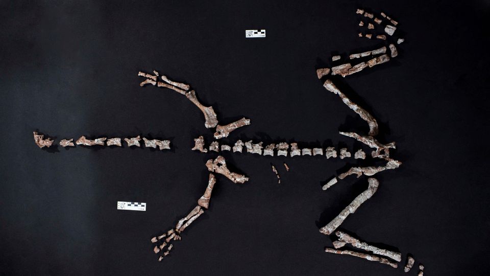 Das Paläontologen-Team des argentinischen Forschungsinstituts Conicet fand das nahezu vollständige Skelett einer bislang unbekannten Dinosaurier-Art,die zu den frühesten überhaupt gehört. Der kleine,langhalsige Dino lebte vor rund 230 Millionen Jahren,wie die Forscher mitteilten.