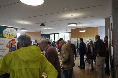 Besonderes Interesse galt der Sortenbestimmung eigener mitgebrachter Früchte: Mit 95 vergebenen Wartemarken wurden die Erwartungen übertroffen. Die Bestimmung nahmen erfahrene Experten vor,darunter der Landespomologe,Hans-Thomas Bosch,Mitarbeiter im Kompetenzzentrum Obstbau Bodensee in der Abteilung Sortenerhaltung/Streuobst und Herr Thilo Tschersich Kreisfachberater im Landkreis Reutlingen mit Schwerpunkt Sortenerhaltung,Herr Kuno von Banks und Herr Ralf Lachenmaier als bekannte Hobby-Pomologen sowie Herr Jochen Berger von der Naturschutzbehörde,Fachbereich Streuobstwiesen der Stadt Stuttgart. Ursprünglich bis 17 Uhr geplant,endete die Beratung erst gegen 18:30 Uhr – ein Ausdruck des großen Engagements und Interesses der Besucher.