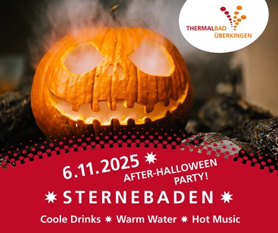 Am Donnerstag,6. November 2025, lädt das Thermalbad Bad Überkingen ab 18:00 Uhr zum Sternebaden unter dem Motto „After-Halloween-Party“ ein.