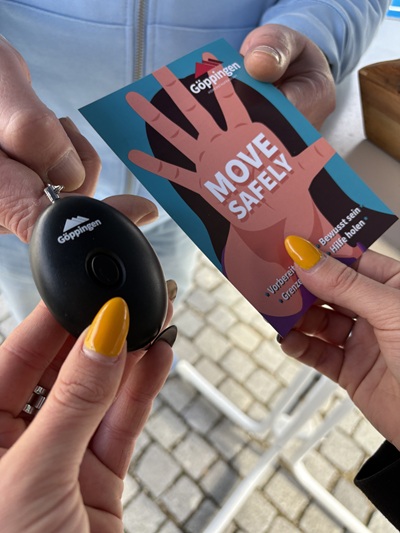 Die Taschenalarme,die die Stadt Göppingen an diesem Tag verteilt,sollen Frauen ein besseres Sicherheitsgefühl geben. Im besten Fall werden potenzielle Täter durch das akustische Signal abgeschreckt,auch Dritte,wie etwa unbeteiligte Passanten,sollen so auf eine potenziell bedrohliche Lage aufmerksam werden und gegebenenfalls die Polizei holen.